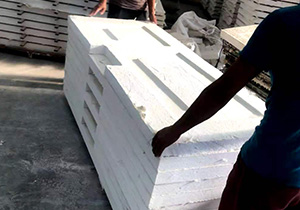 7、煙道板,主要成份為硅微粉、活性高純氧化鎂、氯化鎂、抗堿玻纖布、柔性極佳的植物纖維、不燃質(zhì)輕的珍珠巖、粉煤灰、化學(xué)穩(wěn)定立德粉、高性能改性劑經(jīng)板材成型機(jī)滾壓成板材,將板材割成需要的大小,再拼接成組合式高強(qiáng)耐火排煙道。